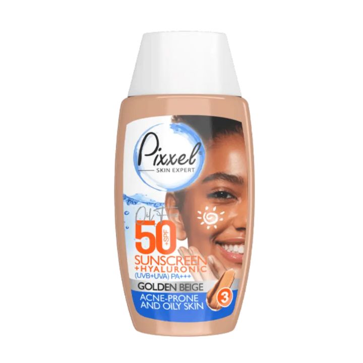 کرم ضدآفتاب رنگ بژ طلایی مناسب پوست جوشدار و چرب پیکسل