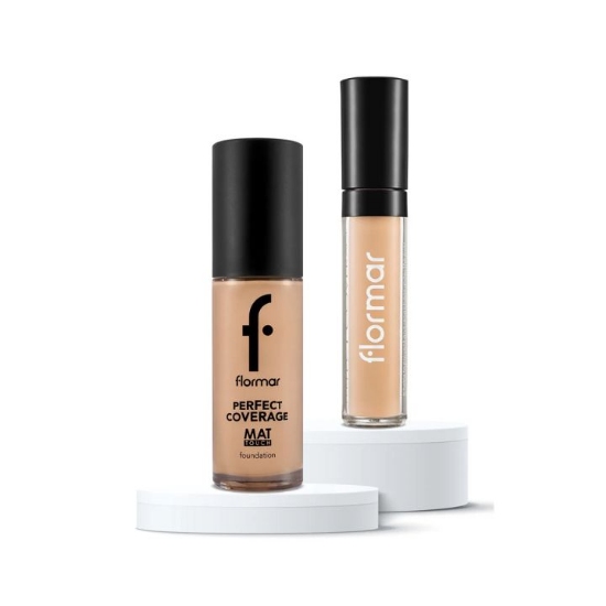 ست 2 عددی کرم پودر پرفکت کاوریج مات 301 و کانسیلر مایع 030 فلورمار