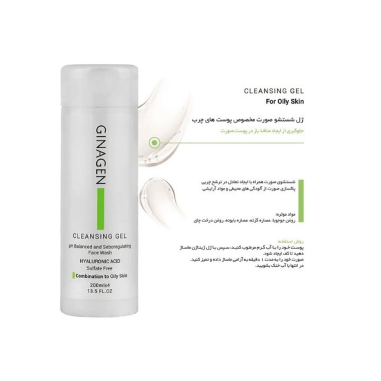 ژل شستشو صورت ژیناژن مناسب پوست چرب و مختلط 200ml